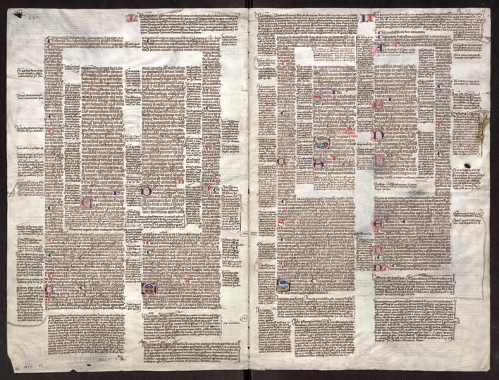 a leghíresebb bolognai kánonjogász, Johannes Andreae (1270 k.–1348) munkájának részletei olvashatóak a margókon.